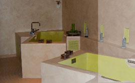 Kalkfarben/Kalkverputze | Kalk wurde früher oft in Viehställen verwendet, weil er eine antibakterielle und geruchsneutralisierende Wirkung hat. Kalkverputz kann sehr vielseitig verarbeitet werden. Je nach gewünschter Struktur verarbeitet man ihn zu von einem sehr feinen und edlen, recht glatten Verputz, bis zum gröberen Verputz mit Rusticoeffekt. Ein weiterer Vorteil gegenüber Kunststoffverputzen liegt in der Atmungsaktivität des Kalks. Er kann Feuchtigkeit aufnehmen und wieder abgeben. Diese Eigenschaft erhöht das angenehme Empfinden eines Raums wesentlich.